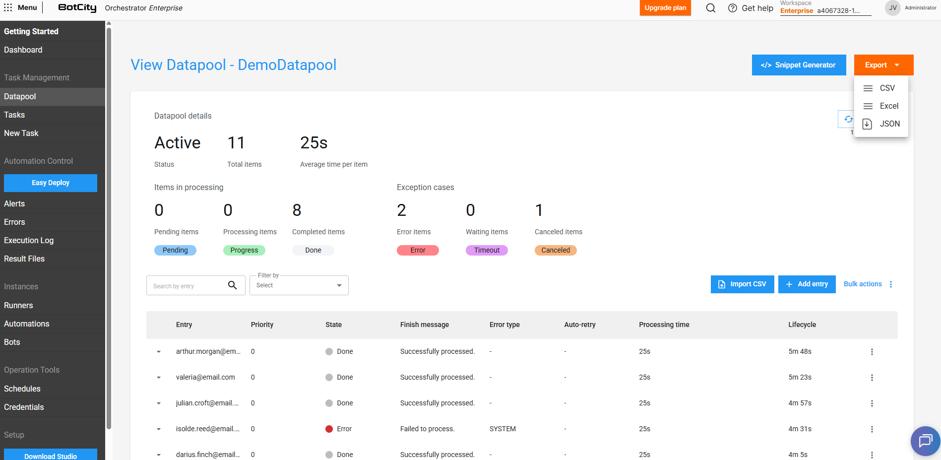 In the following sections, you will find more details about how Datapools work and how to use these resources together with your automation processes.