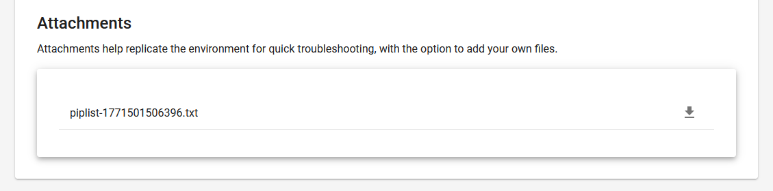 The default attachment helps replicate the environment for quick troubleshooting, and with the option to add your own files in any format, you can more easily understand what went wrong in the process.